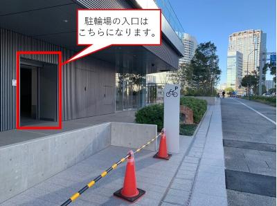 ①みなとみらい大通り沿いに駐輪場の入口がありますので、こちらより入庫してください。