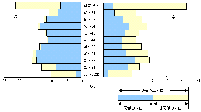 | 非労働力人口 | 11,882 | 2,530 | 9,352 | 13,985 | 3,042 | 10,943 |
