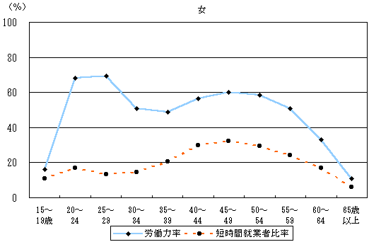 | 労働力率(%) | 61.5 | 81.7 | 41.4 | 54.3 | 69.1 | 40.0 |
