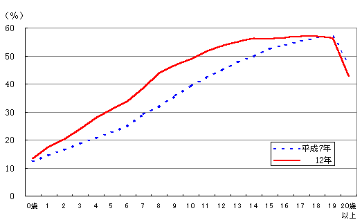 | 12年 | 627,881 | 407,660 | 193,695 | 17,045 | 9,481 | 100.0 | 64.9 | 30.8 | 2.7 | 1.5 | |