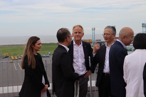 令和6年7月10日、IAPH会長・ハンブルク港CEOマイヤー氏、ハンブルク港国際戦略ネットワーク官ブケ氏、ハロパ港戦略企画部長ヴィルチリオ氏が南本牧ふ頭コンテナターミナルの視察をされました。