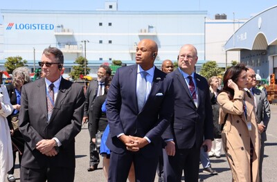 令和7年4月15日、米国メリーランド州知事及びワレニウス・ウィルヘルムセン一行が大黒ふ頭の自動車ターミナルを視察されました。