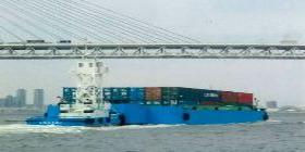 横浜から東京・千葉を海上で結ぶコンテナバージ(コンテナ専用はしけ)は、一度にトラック80台以上に匹敵する大量の海上コンテナを輸送できます。