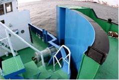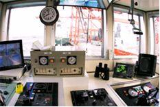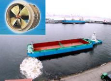 バージの船首部にサイドスラスターを設置することで左右の推進力を発生させ、離着岸時のスピードアップおよび安全性を向上させています。 |