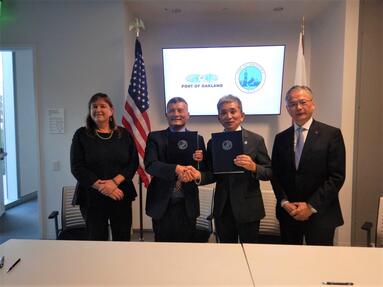 オークランド港との覚書締結 左から2番目:ダニー・ワン オークランド港湾局長