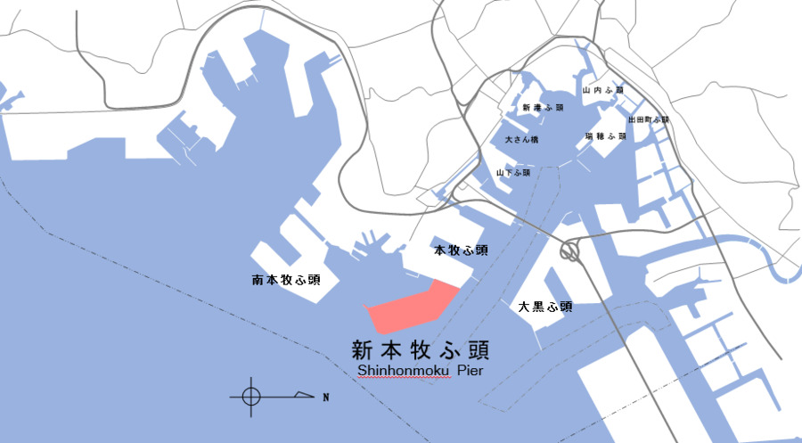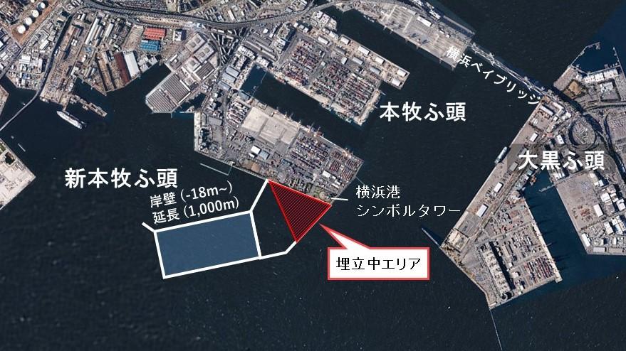 横浜市内の公共事業から発生する建設発生土及び横浜港内の公共事業から発生するしゅんせつ土等の受入れは、新本牧ふ頭にて行っております。