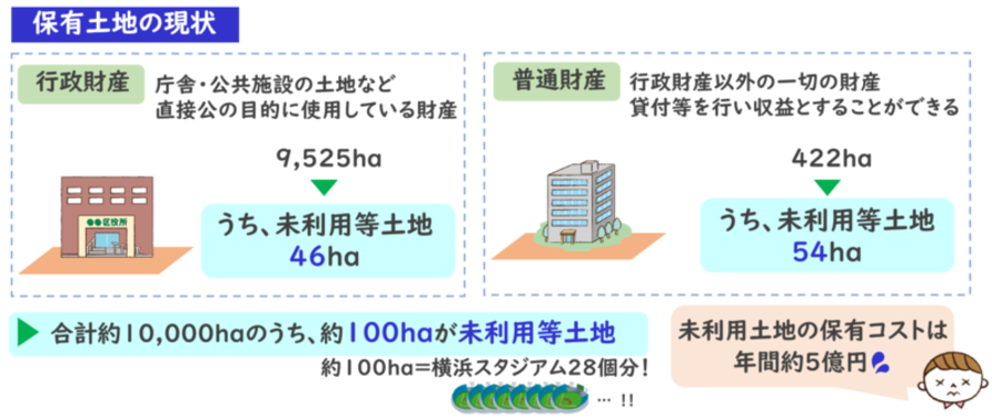 資産の戦略的利活用に向けた取組を全庁的に推進するため、「横浜市資産活用基本方針」を改定し、資産所管局ごとに未利用等土地の適正化に向けた計画を策定するなど、資産の適正化を推進