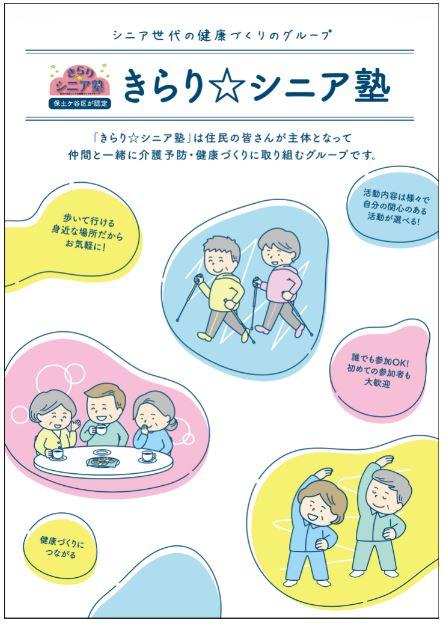 きらり☆シニア塾の活動やアンケート調査から見えた活動の効果、参加者の声を紹介するリーフレットを作成しました。