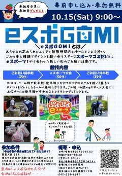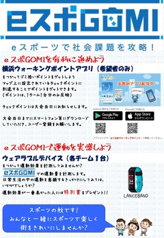 あらかじめ定められたエリアで制限時間内にチームでごみを拾い、ごみの量と種類でポイントを競い合うスポーツのスポーツゴミ拾いに、eスポーツをかけ合わせた新しい形のごみ拾い活動です。