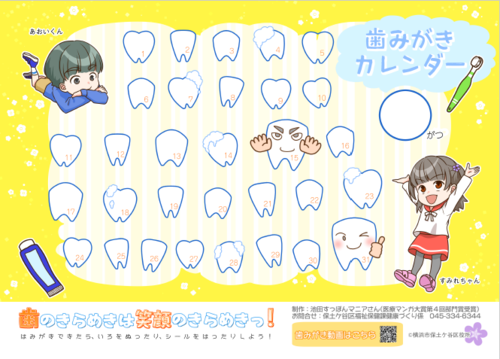 歯みがきカレンダーは区役所でも配布していますので、5階54番窓口にて「歯みがきカレンダーが欲しい!」とお声がけください!