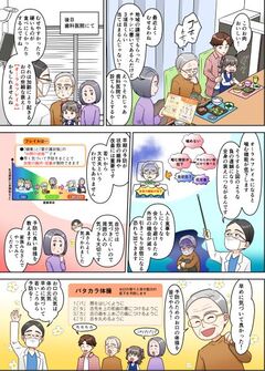 オーラルフレイルについてマンガで分かりやすく説明しています!表面には5つのオーラルフレイルチェックもあるのでぜひやってみてください!