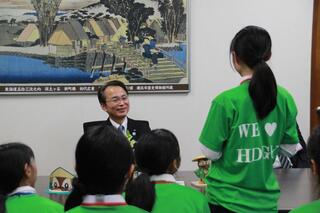 お揃いの活動Tシャツを着て、区公式マスコットほどぴーのグッズ案や保土ケ谷区への想いを区長に直接届けました。