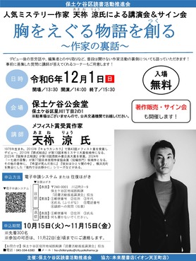 【動画配信は終了しました】人気ミステリー作家 天祢 涼氏による講演会&サイン会「胸をえぐる物語を創る~作家の裏話~」