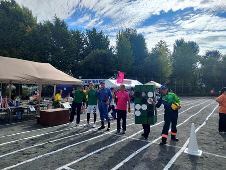 参加者120名超(子供も含む)を迎え、色別対抗戦方式で総合優勝を競いました。また、小学生以下の種目のひとつである菓子袋詰め放題では、約20人の子供たちが用意された大量のお菓子を、支給された袋に必死に詰めている光景は主催者冥利でした。
