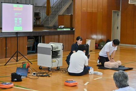 第2部の前半では、横浜市スポーツ協会の指導のもと、救急救命講習が行われました。資料に基づき応急手当や救命処置の手順について確認した後、4名づつのグループに別れ、それぞれのグループに配付されたダミー人形を使用して、各人が順番に、手順に従って救命処置のシミュレーションを体験しました。想像よりも胸骨庄迫の強度が必要であったり、スピードも速いことなど、体験して初めて知った委員も多く、大変参考になった研修でした。各種大会で不測の事態が生じた時にもしっかりと対応できるよう、出席者全員が真剣に取リ組んでいました。
