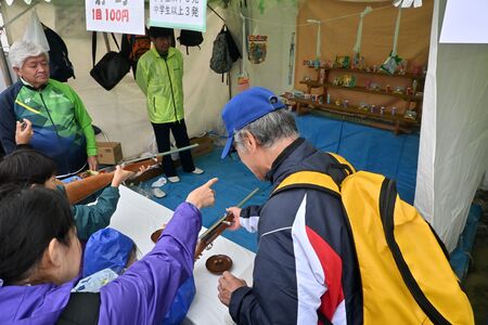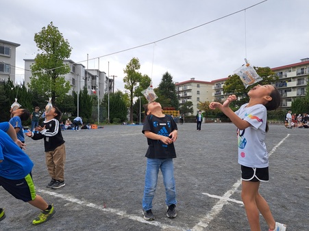 焼き鳥の隣では射的コーナーも出店しました。物価高の影響もあリ1回100円に値上げさせていただきましたが、雨の中、行列のできる盛況ぶりでした。子どもたちが真剣に的を狙い、見事倒した時の満足げな表情は微笑ましかったです。