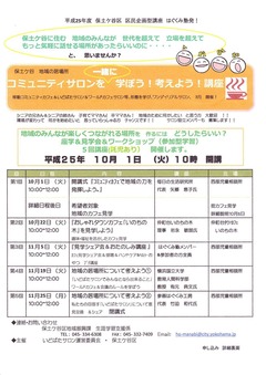 保土ケ谷区地域振興課が主催している「はぐくみ塾」より立ち上がり、実施した区民企画型講座を紹介します。