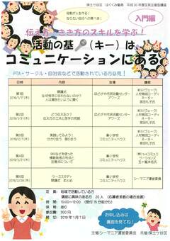 「グループ運営のコツ」「魅力ある講座を企画・運営するノウハウ」を学びながら、「地域での新たなつながり」を作る場です。