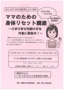 ママのための身体リセット講座~さまざまな年齢の方を対象に募集中!~
