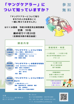 はぐくみ塾を修了し、参加者同士で3人以上のグループを作ると、区の補助事業として「区民企画型講座」を実施することができます。