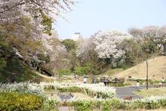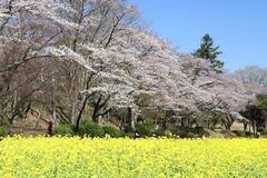 もともとの地形や樹木を活かして整備しているため、園内には豊かな緑が多く散策にぴったり。春には、菜の花や約200本の桜に囲まれた道をゆっくりお散歩するのもおすすめ。