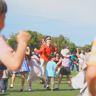 この写真は、音楽隊の演奏に合わせて子どもたちが楽しそうに踊る姿があまりにかわいらしくて、思わず撮影した一枚です。