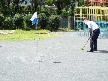 その後、「ボッチャ」「カローリング」などのニュースポーツや、各地区でも大会が行われている「グラウンドゴルフ」についての研修も開催され、私も参加させていただきました。
