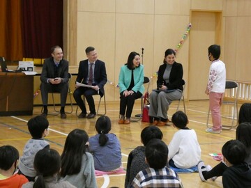 今回の大使の来訪は、小学生との交流が主な目的で、当日は、午前中から権太坂小学校と上星川小学校を訪問いただき、ブルガリアの紹介や絵本の読み聞かせ、ブルガリアメニューの給食などを通じて、子どもたちと交流していただきました。