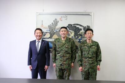 4月21日(木曜日)、陸上自衛隊中央輸送隊(保土ケ谷区岡沢町)の小澤1等陸佐と鈴木3等陸佐の2名が区役所を来訪され、ベトナム派遣から無事に帰還された旨をご報告いただきました。