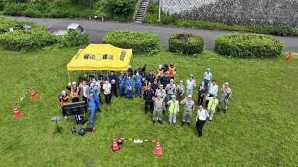 この取組は、令和4年度に昭和建設様と締結した「災害発生時等におけるドローンを活用した活動支援に関する協定」に基づき実施したものです。大地震や風水害を想定した区内一円の状況や崖崩れ等の被害状況を把握することを想定して、訓練を行いました。