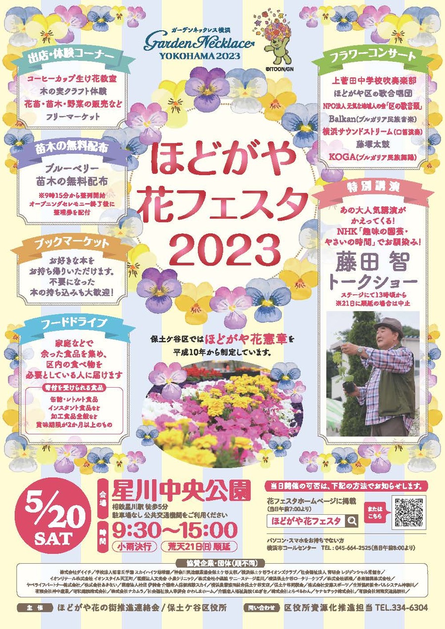 保土ケ谷区では、平成10年から「ほどがや花憲章」を制定しています。この「ほどがや花憲章」の理念を広く普及し、清潔できれいな街ほどがやを目指すため、平成11年より「ほどがや花フェスタ」を開催しています。花と緑にあふれた潤いとやすらぎのあるイベントですので、お誘いあわせの上、ぜひご来場ください!