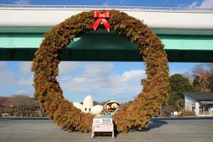 ふたりが顔を出していたのは、すっごく大きなクリスマスリースでした!