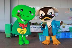 ほどぴーとぼたんちゃんは、それぞれの区で有名な野菜を持ち寄ったそう🥬