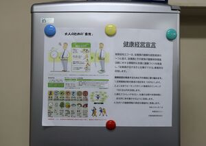 冷蔵庫に食育に関する情報を貼って、従業員が見られるようにしています。