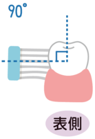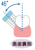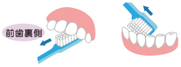 図のように、歯に合わせて歯ブラシの向きを変えましょう。