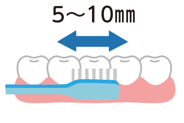 歯1~2本分(5~10mm程度)を10往復程度こするように動かします。