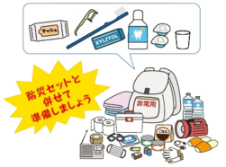 災害が起きると、飲料水の不足などから歯みがきが難しくなり、お口の細菌による呼吸器感染症が起こりやすくなります。もしものときにも健康に過ごせるように、日頃から備えましょう!