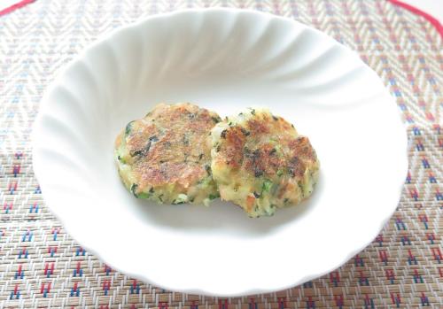 ③シーチキンをほぐして加え、だし汁と片栗粉、塩を加えて混ぜ、食べやすい大きさに形成します。