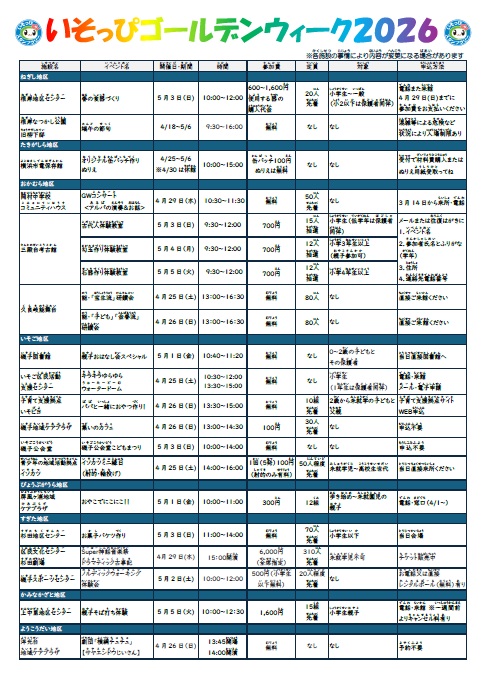 いそっぴゴールデンウイーク2025開催!4月26日(土曜日)~5月6日(祝・火)