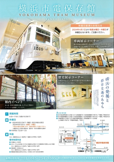 明治37年から昭和47年まで約70年間、横浜市民の足として親しまれた市電が当時の姿でご覧頂けます。