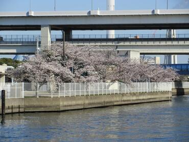 川沿いの桜並木は、春に桜の見どころとなっており、普段は構内に入ることはできませんが、八幡橋や対岸から楽しませてくれる桜の名所です。