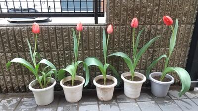 🗨️「チューリップが5つ全部きれいに咲きました。」