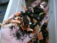 | 前回までの状態は良好! | 今回の生ごみは 玉ねぎ・水菜・ねぎ・しめじ |