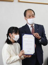 市内小学生が、夏休み中に「エコライフ・チェックシート」を使って、様々な環境行動に取り組む「こども『エコ活。』大作戦!2021」。市内でも特に活動への参加率が高かった梅林小学校で、12月7日、感謝状の贈呈式が行われました。