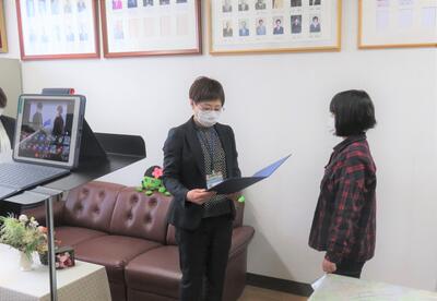 国連WFP協会事務局長から4年生代表児童へ感謝状が渡されました