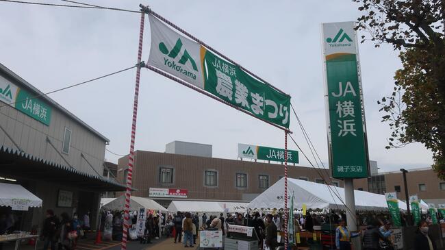 11月16日(土曜日)、JA横浜磯子支店で農業まつりが開催されました。秋晴れの過ごしやすい気候で、多くの方々が来場され、出店に並んだ豊富な品揃えの新鮮な野菜を選んだり、お餅や豚汁などに行列を作っていました。