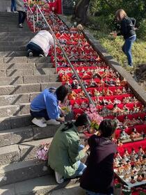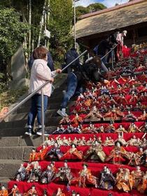 3月1日(土曜日)~3月2日(日曜日)市内で唯一とされる茅葺屋根が印象的な栗木神社(磯子区栗木2-13-21)で毎年恒例の「栗木ひな祭り」が開催されました。会場に訪れた方々は、1,000体を超えるひな人形が階段を埋め尽くす圧巻の光景をスマホやカメラで写真に収めていました。