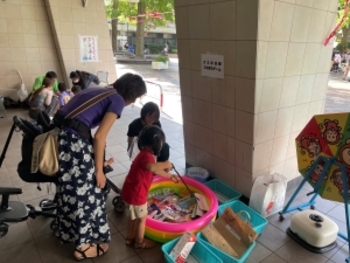 また、いそご多文化共生ラウンジが出店し、外国人ボランティアの方と一緒にゲーム感覚でごみの分別が学べる「ごみ分別つりぼりゲーム」を行い、来場した子どもたちに大人気でした。