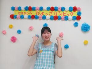 会場の飾りつけや競技の品出し、そしてメダル渡しなど高校生ボランティアも笑顔で大活躍でした。「小さい子たちに接するのは、初めてですが、とても楽しく良い経験になりました」と笑顔で答えてくれました。