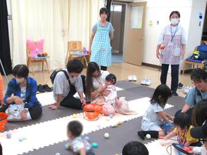 9組の親子が参加。笑い声や泣き声もあり、お子さんもパパもママも楽しんで賑やかなひと時となりました。👨👩👧👦